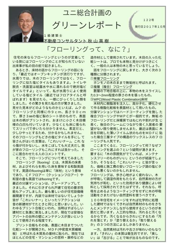 Notice: Function _load_textdomain_just_in_time was called incorrectly. Translation loading for the all-in-one-seo-pack domain was triggered too early. This is usually an indicator for some code in the plugin or theme running too early. Translations should be loaded at the init action or later. Please see Debugging in WordPress for more information. (This message was added in version 6.7.0.) in /home/xsuni21/second-op21.com/public_html/wp-includes/functions.php on line 6121 フローリングって・・・なに? | 秋山英樹の不動産・建築のセカンドオピニオン