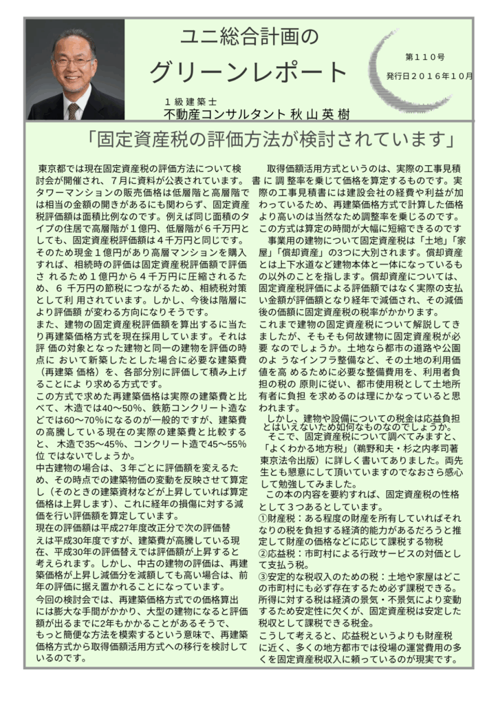 TOP  >  グリーンレポート  >  固定資産税の評価方法が検討されています