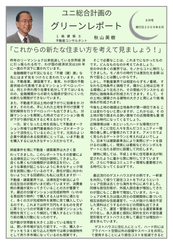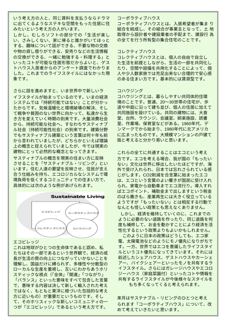 TOP  >  グリーンレポート  >  これからの新たな住まい方を考えてみましょう