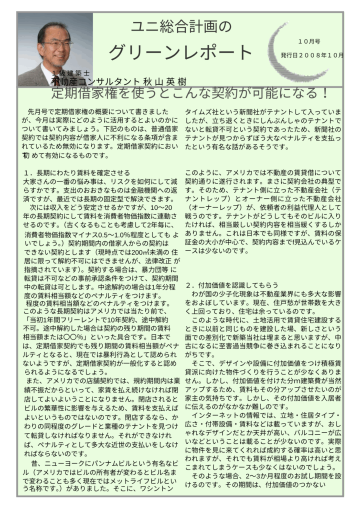 定期借家権を使うとこんな契約が可能になる | 秋山英樹の不動産・建築のセカンドオピニオン