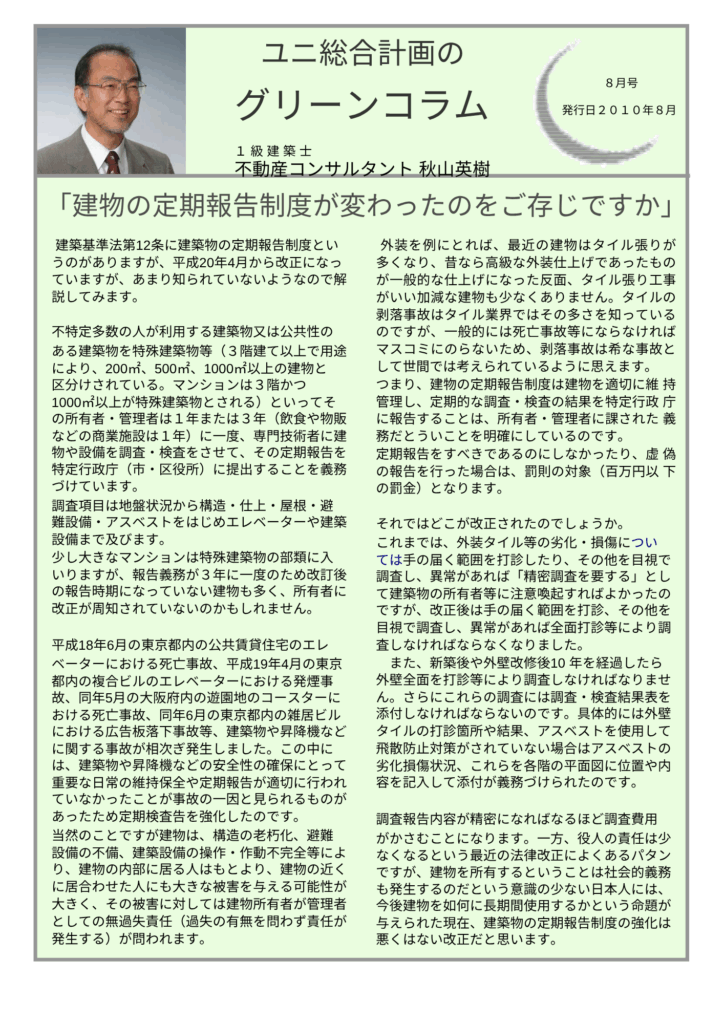 Notice: Function _load_textdomain_just_in_time was called incorrectly. Translation loading for the all-in-one-seo-pack domain was triggered too early. This is usually an indicator for some code in the plugin or theme running too early. Translations should be loaded at the init action or later. Please see Debugging in WordPress for more information. (This message was added in version 6.7.0.) in /home/xsuni21/second-op21.com/public_html/wp-includes/functions.php on line 6121 建物の定期報告制度が変わったのをご存じですか? | 秋山英樹の不動産・建築のセカンドオピニオン