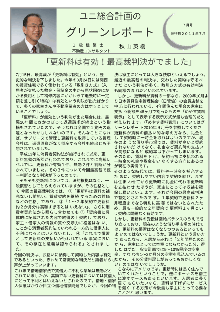 TOP  >  グリーンレポート  >  更新料は有効、最高裁判決がでました