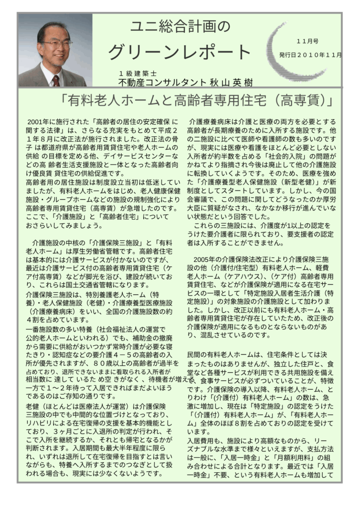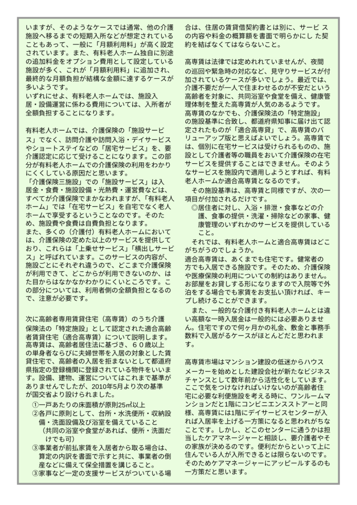 TOP  >  グリーンレポート  >  有料老人ホームと高齢者専用住宅