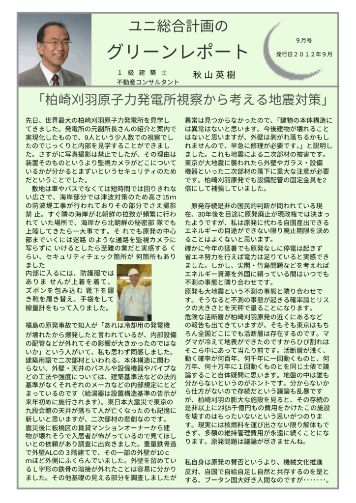 Notice: Function _load_textdomain_just_in_time was called incorrectly. Translation loading for the all-in-one-seo-pack domain was triggered too early. This is usually an indicator for some code in the plugin or theme running too early. Translations should be loaded at the init action or later. Please see Debugging in WordPress for more information. (This message was added in version 6.7.0.) in /home/xsuni21/second-op21.com/public_html/wp-includes/functions.php on line 6121 柏崎刈羽原子力発電所視察から考える地震対策 | 秋山英樹の不動産・建築のセカンドオピニオン