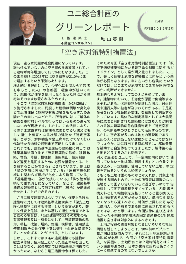 Notice: Function _load_textdomain_just_in_time was called incorrectly. Translation loading for the all-in-one-seo-pack domain was triggered too early. This is usually an indicator for some code in the plugin or theme running too early. Translations should be loaded at the init action or later. Please see Debugging in WordPress for more information. (This message was added in version 6.7.0.) in /home/xsuni21/second-op21.com/public_html/wp-includes/functions.php on line 6121 空き家対策特別措置法 | 秋山英樹の不動産・建築のセカンドオピニオン
