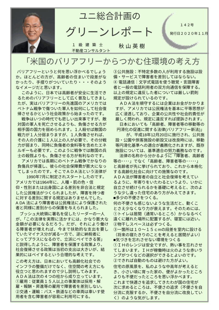 TOP  >  グリーンレポート  >  米国のバリアフリーからつかむ住環境の考え方