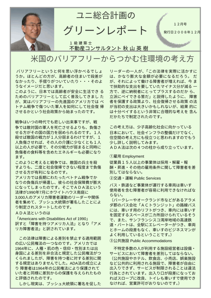 米国のバリアフリーから掴む樹環境の考え方 | 秋山英樹の不動産・建築のセカンドオピニオン