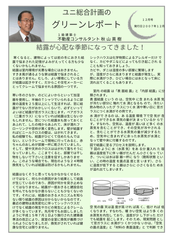 TOP  >  グリーンレポート  >  結露が心配な季節になってきました