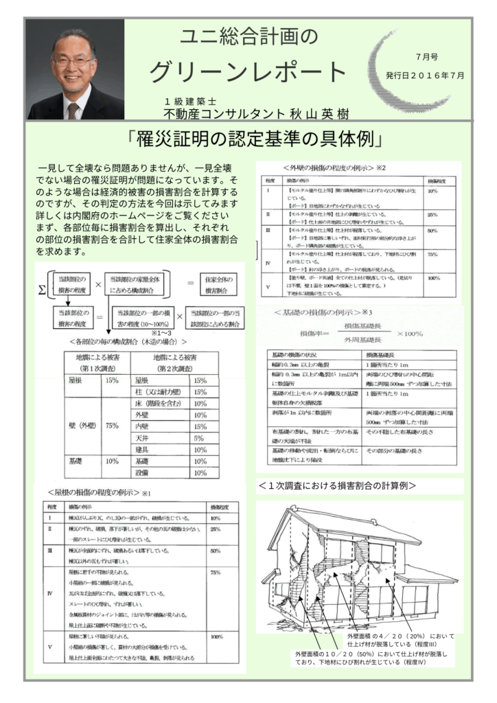 Notice: Function _load_textdomain_just_in_time was called incorrectly. Translation loading for the all-in-one-seo-pack domain was triggered too early. This is usually an indicator for some code in the plugin or theme running too early. Translations should be loaded at the init action or later. Please see Debugging in WordPress for more information. (This message was added in version 6.7.0.) in /home/xsuni21/second-op21.com/public_html/wp-includes/functions.php on line 6121 罹災証明の認定基準の具体例 | 秋山英樹の不動産・建築のセカンドオピニオン